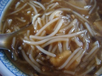好久沒吃了,還是一樣美味啊! 而且這次我還發現,宜蘭和羅東的米粉羹也不太一樣,宜蘭的米粉羹用的米粉比較租﹝但沒員山的那麼粗﹞,羅東的米粉羹用的米粉比較細一點﹝但不是一般炒米粉那種那麼細﹞。都是米粉羹,但吃起來不太一樣。