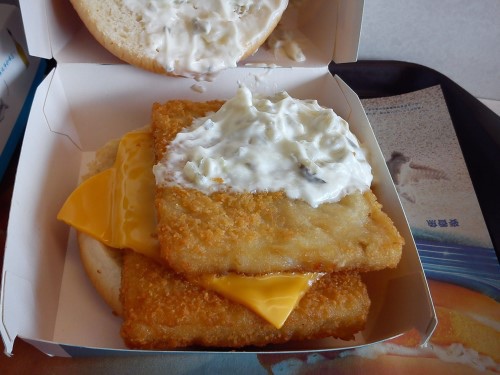 我本來就滿愛吃麥香魚的,只是單層的麥香魚有點單薄,吃不過癮,所以也不是那麼常點。巴特...巴特...現在是雙層魚肉,那一定要吃的啦! 超值午餐只要99,很划算哩!!﹝一口咬下雙層的魚肉,真的很爽啊!﹞
