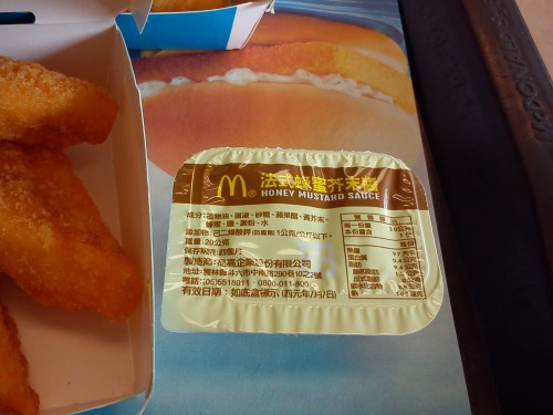 還加了29元加點黃金魚柳條,其實吃起來就和麥香魚的魚肉差不多,不過,黃金魚柳條有附法式蜂蜜芥末醬,這個好吃,哈!