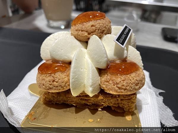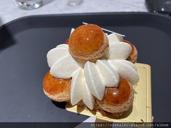 「大溪地香草聖多諾黑」也是非常的美味,上面那個像泡芙的東西,在法國甜點中滿常出現的,然後它的底層是千層脆餅,搭上cream,非常迷人非常好吃!