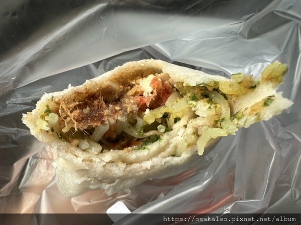 裡面的料有肉鬆、酸菜、豆干、紅燒肉、豆芽菜...等,用料很實在,每種食材也處理得很好,口感和味道還不錯。整體來說是好吃的。