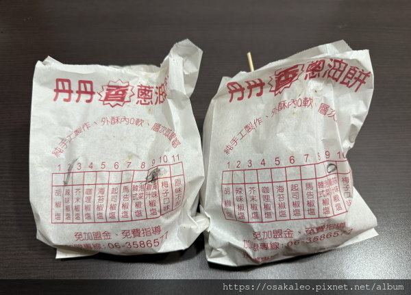 很喜歡丹丹蔥油餅的味道與口感,蔥油餅本身就好吃了,再加上多種調味粉,更添風味。真的很好吃欸!:)